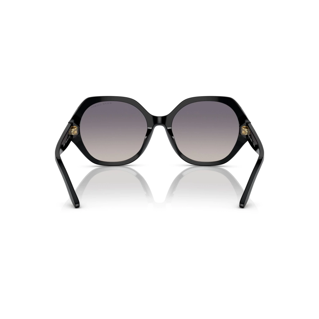 O óculos de sol Ralph Lauren RL8208 5001V6 apresenta um design irregular em preto brilhante, ideal para quem busca um visual moderno e cheio de personalidade.